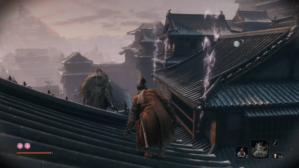 Dark Souls’ main attraction are its boss encounters: screen-filling beasts with tragic backstories and huge health pools. Most of Sekiro’s major encounters are more akin to Bloodborne’s Gascoigne fight: one-on-one duels where your opponent has similar tools. It’s not about experimenting with setups and pumping experience into stats to get the right build, it’s about testing your skills against deadly and efficient foes. It feels more pure.